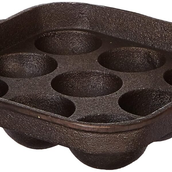 Amazon Brand – Solimo Cast Iron Pre-Seasoned Paniyarkal | Retains Heat | 9 Holes | Black(AA1103/39)