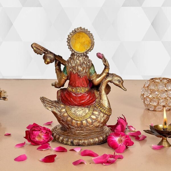 AONA Resin Saraswati Idol Statue for Home Decor On Swan for Diwali Temple | Height : 8.5 Inches, Multicolour(AA1103/106)