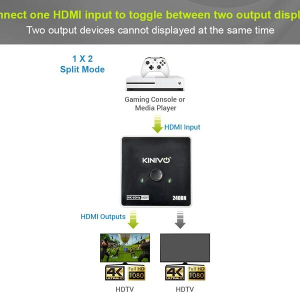 Kinivo Premium 4K HDMI Switch/Splitter HDMI Switcher – Supports 4K @ 60Hz, 3D, Full HD and Ultra HD (240BN – 2 Port) (AA1104/203)