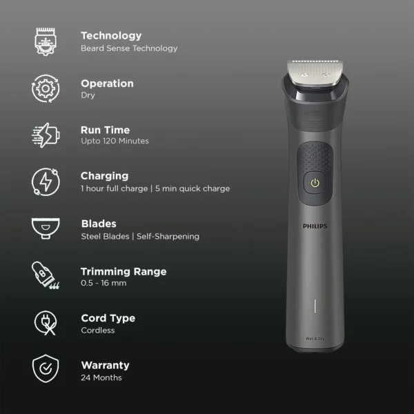 PHILIPS MG7920/65 13-in-1 Rechargeable Cordless Grooming Kit for Face, Head and Body for Men (120mins Runtime, Beard Sense Technology, Grey)