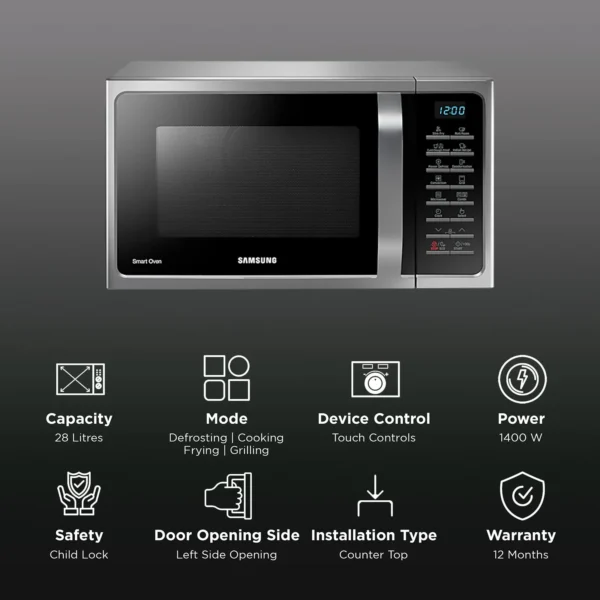 SAMSUNG 28L Convection Microwave Oven with Slim Fry Technology (MC28A5025VS/TL, Black)