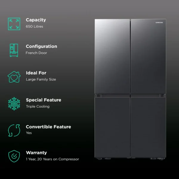 Buy SAMSUNG 653 Litres 3 Star Frost Free Side by Side Door Smart Wifi Enabled Convertible Refrigerator with Twin Cooling Plus Technology (RS76CB81A333/HL, Glam Deep Charcoal) Onlin