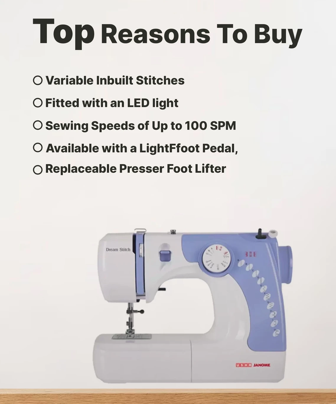 ఉషా Dream Stitch ఎలక్ట్రిక్ కుట్టు మిషన్ (బిల్ట్ ఇన్ స్టిచెస్ 7)(AA1103/75)