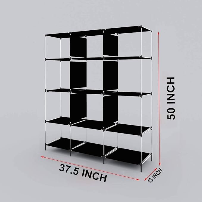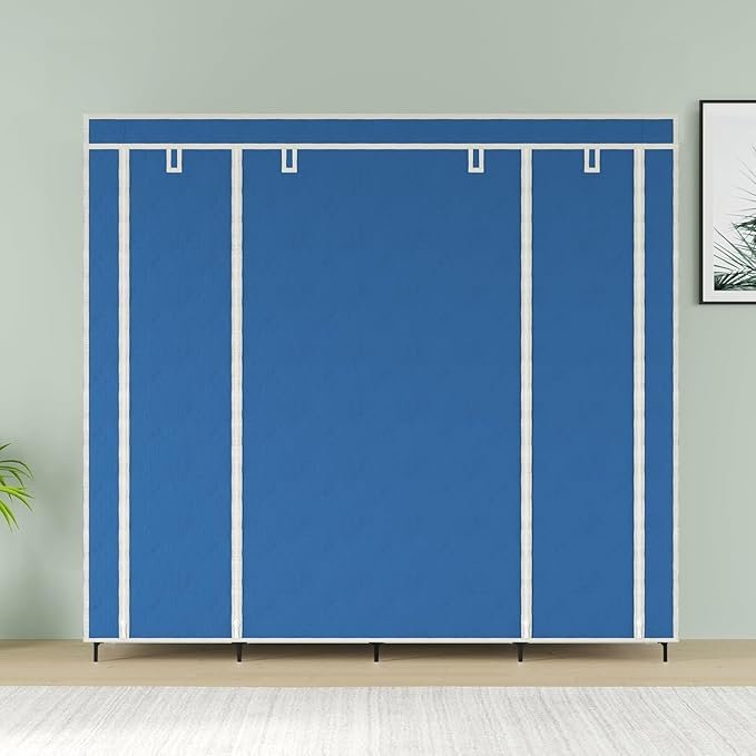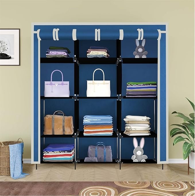 12 Shelves Collapsible Foldable Wardrobe Storage Organizer Shelves for Clothes Racks Fabric Almirah Non Rustable Iron 88250 (Blue) (AA1102)