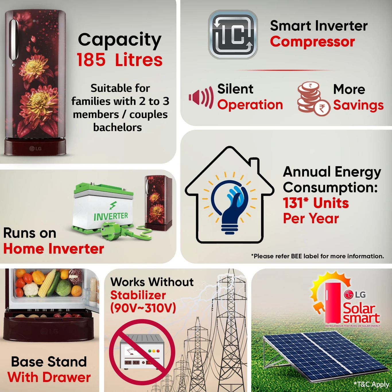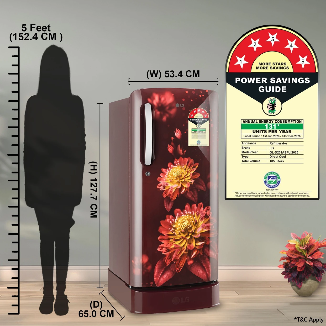 1 review for 185 L Direct Cool Single Door 5 Star Refrigerator With Base Drawer With Smart Inverter Compressor , Auto Smart Connect and Fast Ice Making ( Scarlet Florance , GL _ D201ASFU)(AA1103/121)