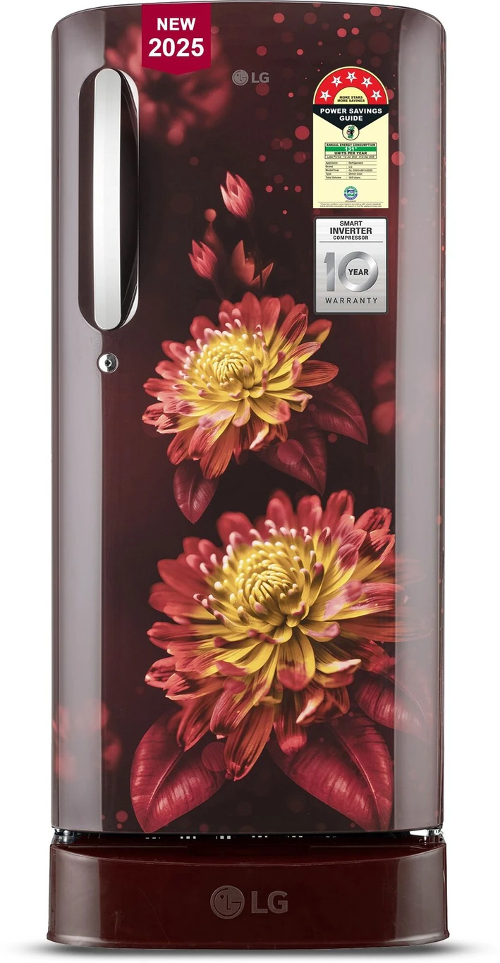 185 L Direct Cool Single Door 5 Star Refrigerator With Base Drawer With Smart Inverter Compressor , Auto Smart Connect and Fast Ice Making ( Scarlet Florance , GL _ D201ASFU)(AA1103/121)
