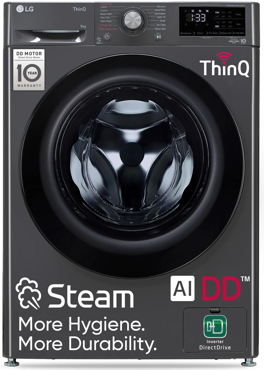 9 kg 5 Star with AI Direct Drive, 6 Motion, Inverter Direct Drive, Steam and Wi-Fi Enabled Fully Automatic Front Load with In-built Heater Black (FHP1209Z5M)[AA1096/39]