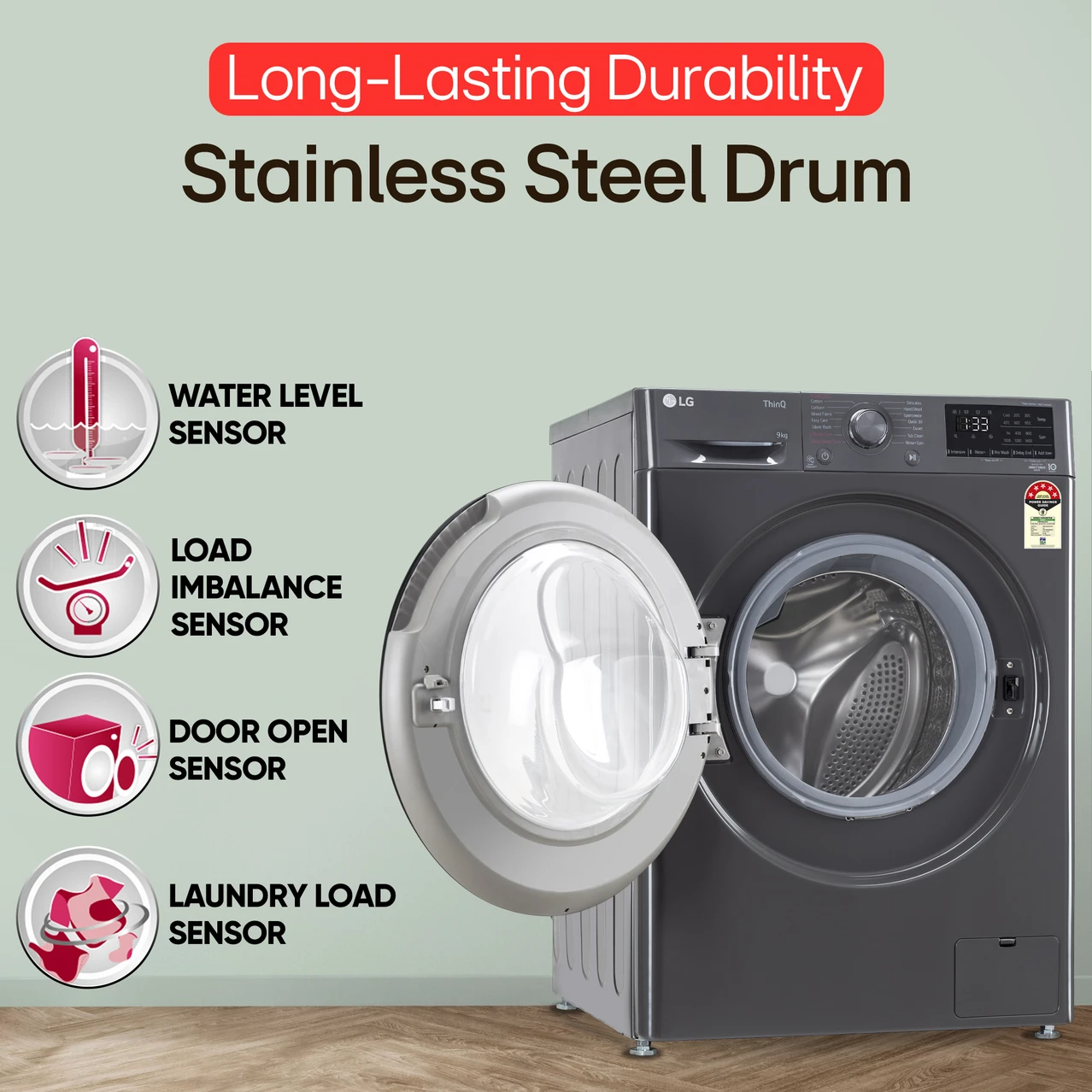 9 kg 5 Star, Inverter Direct Drive Technology, 6 Motion DD, Reduce germs & allergens with steam cycles, In-built Heater, Touch Panel Fully Automatic Front Load with In-built Heater Black, Grey (FHB1209Z2M) [AA1096/40]