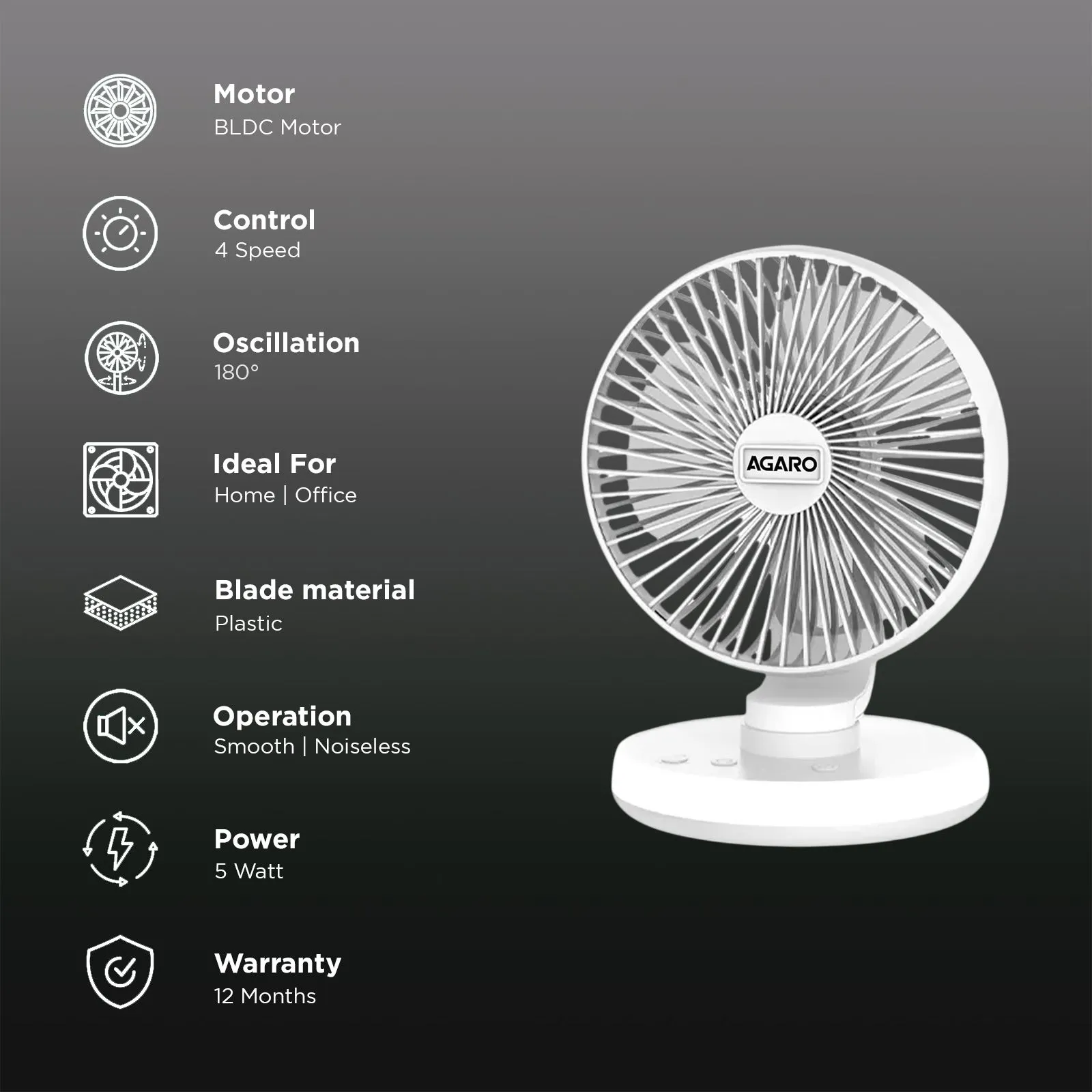 AGARO Alpha 3 Blade Rechargeable Personal Mini Fan (Copper Brushless Motor, White)