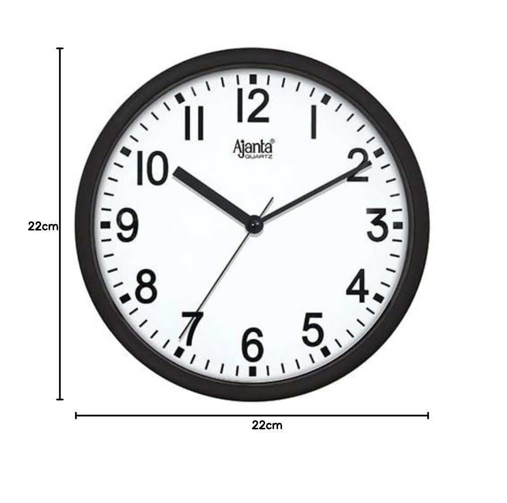 Ajanta Quartz Step Movement Plastic Wall Clock (Black) – Analog, 22 Cm [AA1102/315]