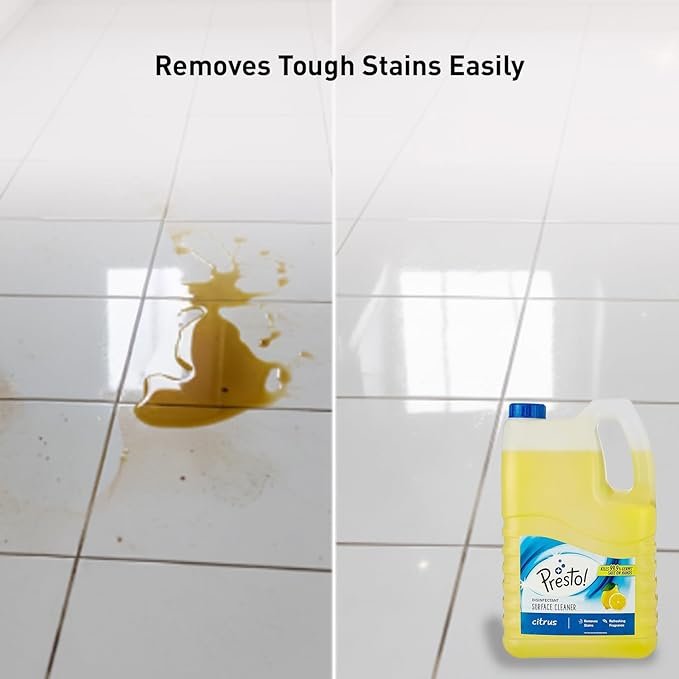 Presto! Disinfectant Surface & Floor Cleaner | Citrus | 5 Litre | Kills 99.9% Germs | Suitable For Floor & Bathroom Surfaces Like Ceramic, Marble, Granite, Mosaic[AA1100/20]