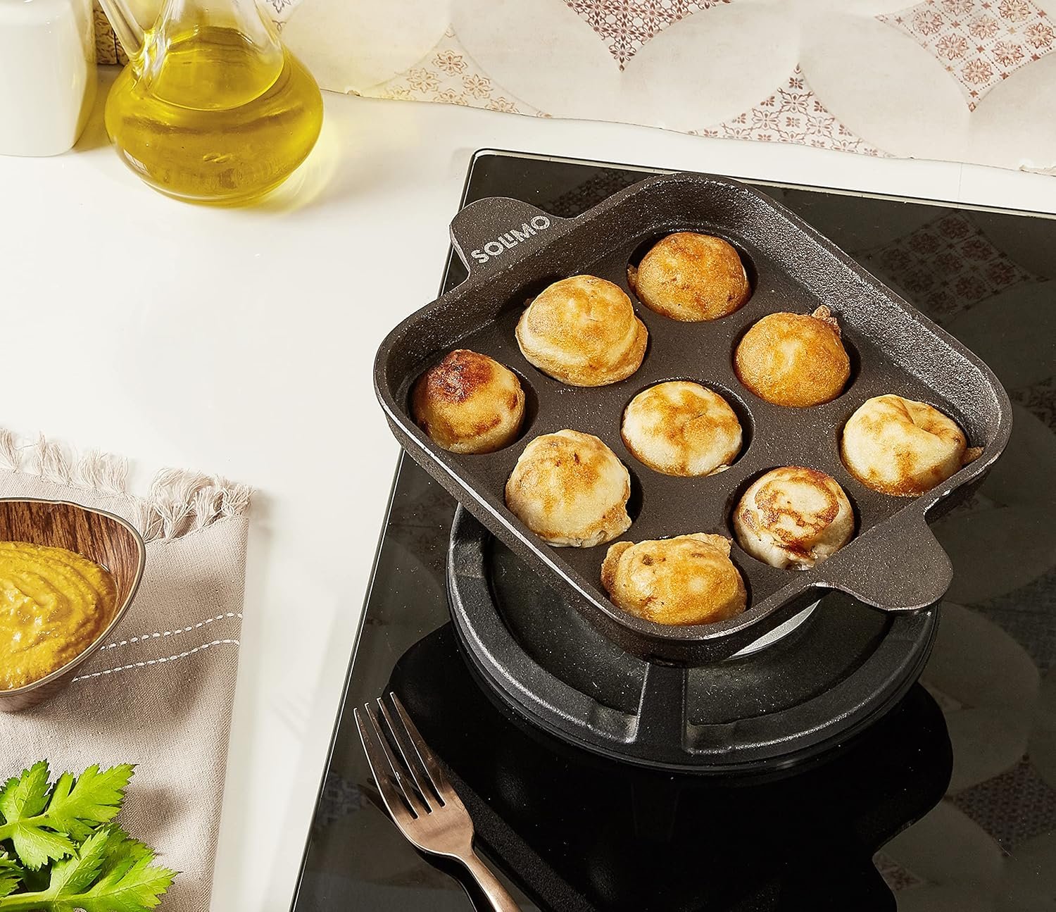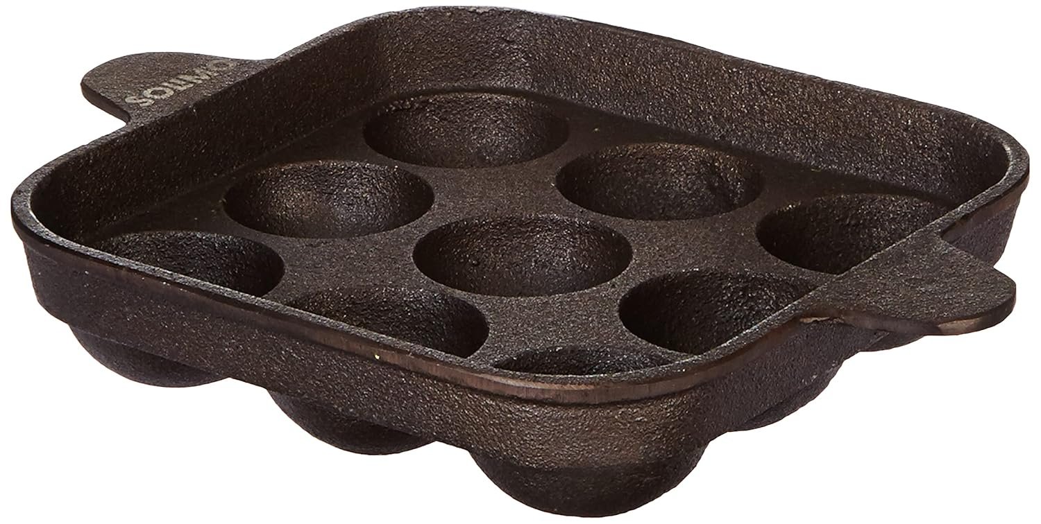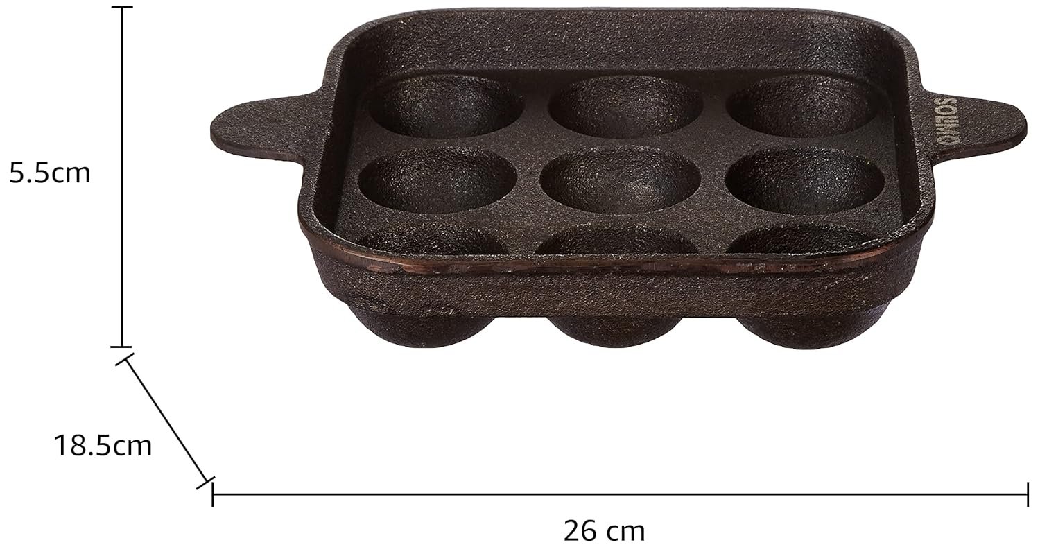 Amazon Brand – Solimo Cast Iron Pre-Seasoned Paniyarkal | Retains Heat | 9 Holes | Black(AA1103/39)