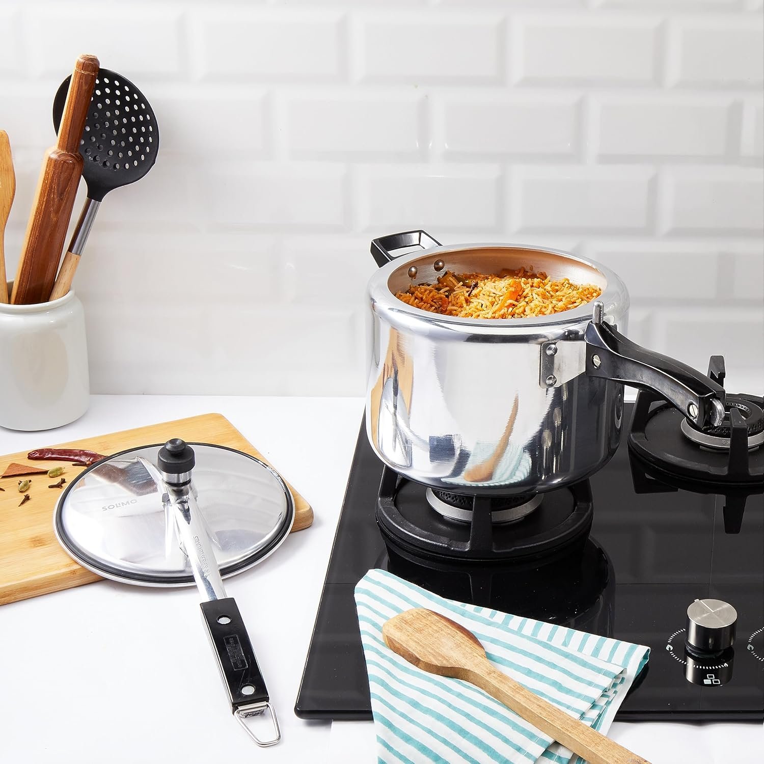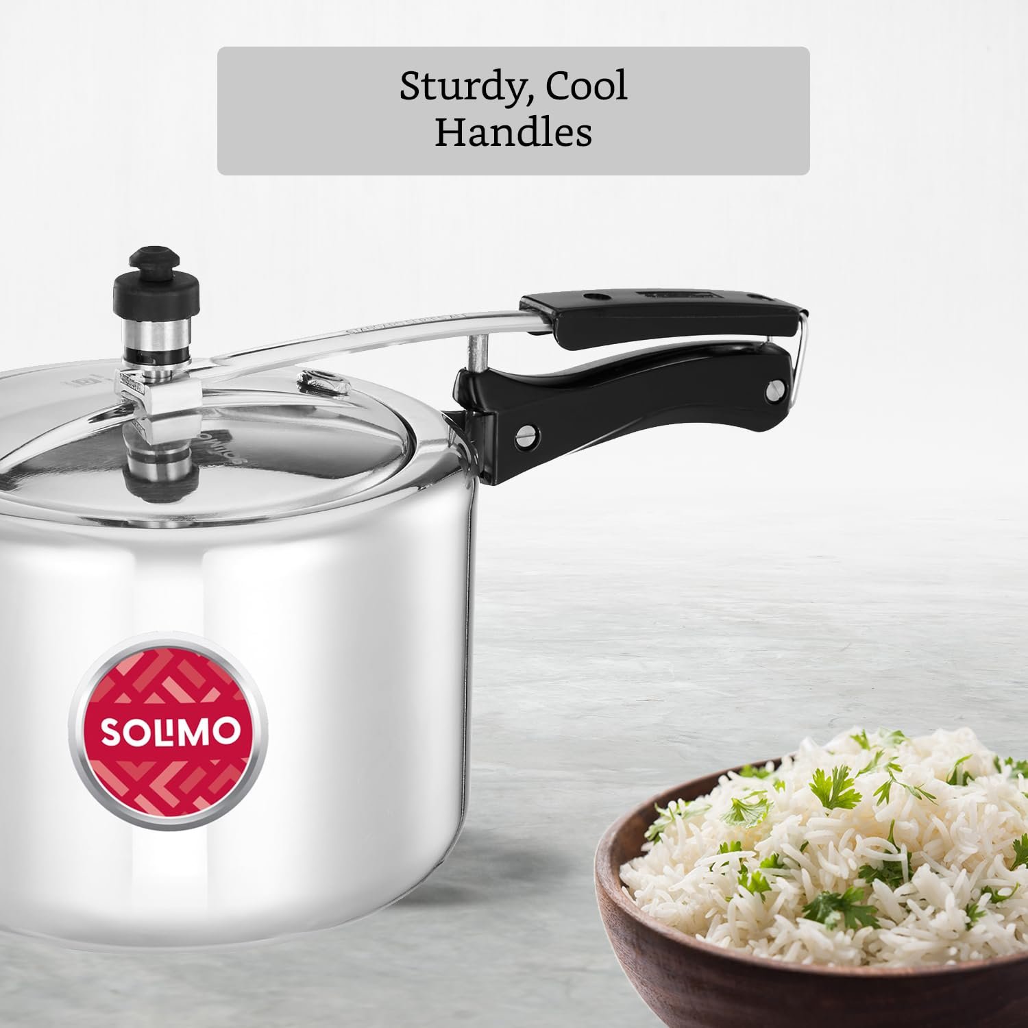 Amazon Brand – Solimo – Sleek Induction Bottom Aluminium Pressure Cooker – 5 Liter (Inner Lid), Silver(AA1103/90)