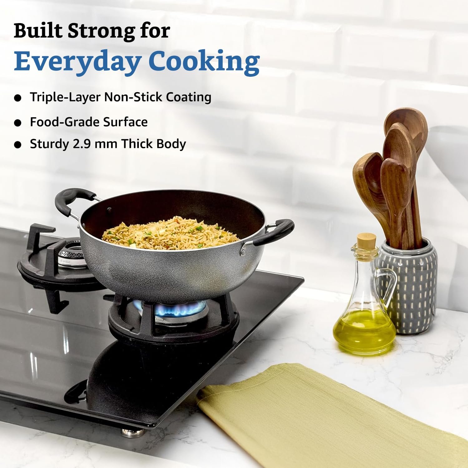 Be the first to review “Amazon Solimo Non-Stick Kadhai With Glass Lid | 26 Cm | 4 L | Hammerstone Finish | 3 Coat, 2.9 Mm Thickness|Black(AA1103/92)” Cancel reply