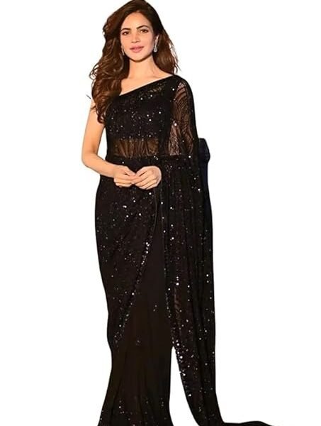 Shiv Textiles Women’s Georgette Sequined Saree with Banglory Silk Blouse, Black – Sarees For Women
