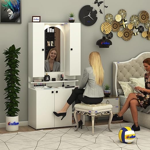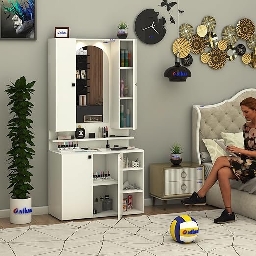 Be the first to review “Anikaa Opulex Engineered Wood Dressing Table with Mirror Cabinet, LED Lights, Storage Shelves & Back Panel – Wall Mounted Makeup Vanity & Organizer for Bedroom -(White) DIY Installation (AA1104/221)” Cancel reply