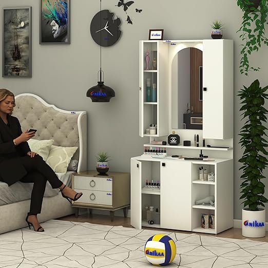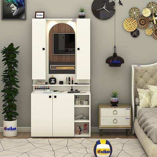 Anikaa Opulex Engineered Wood Dressing Table with Mirror Cabinet, LED Lights, Storage Shelves & Back Panel – Wall Mounted Makeup Vanity & Organizer for Bedroom -(White) DIY Installation (AA1104/221)