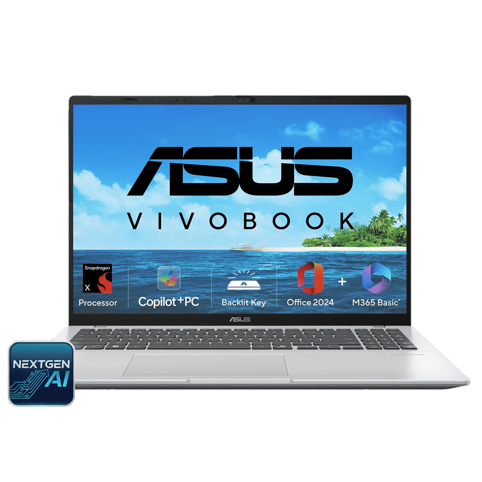ASUS Vivobook 16 Snapdragon X X1 26 100 Thin & Light Laptop (16GB, 512GB SSD, Windows 11 Home, 16 inch WUXGA Display, MS Office Home 2024, Cool Silver, 1.88 KG)