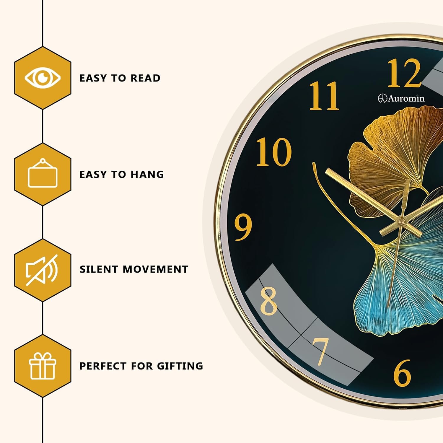 Be the first to review “Auromin Designer Wall Watch for Living Room | Fancy Wall Clock for Bedroom Stylish Latest | Watch for Home Wall, Silent Modern Luxury Wall Clocks for Office, Kitchen, Home Décor (Leaf-Gold)(AA1103/180)” Cancel reply