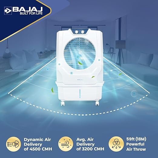 Bajaj Shield Series Arteon 55L Desert Air Cooler | Dual Side Water Inlet | Inverter Compatible | 60Ft Air Throw | Ice Chamber | 1 Year Warranty【White】