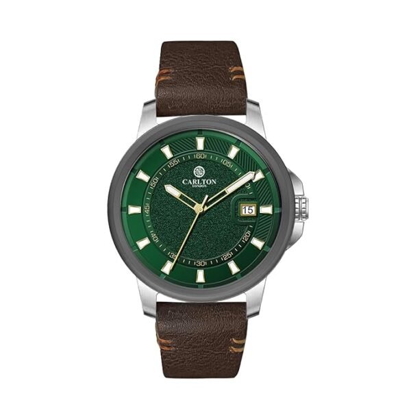 Carlton London Duke Men Leather Analog Dated Watch | Green Waterproof Watches for Men Boys Male Fashionable Trendy Quartz Movement Wrist Watch CLLSGRN