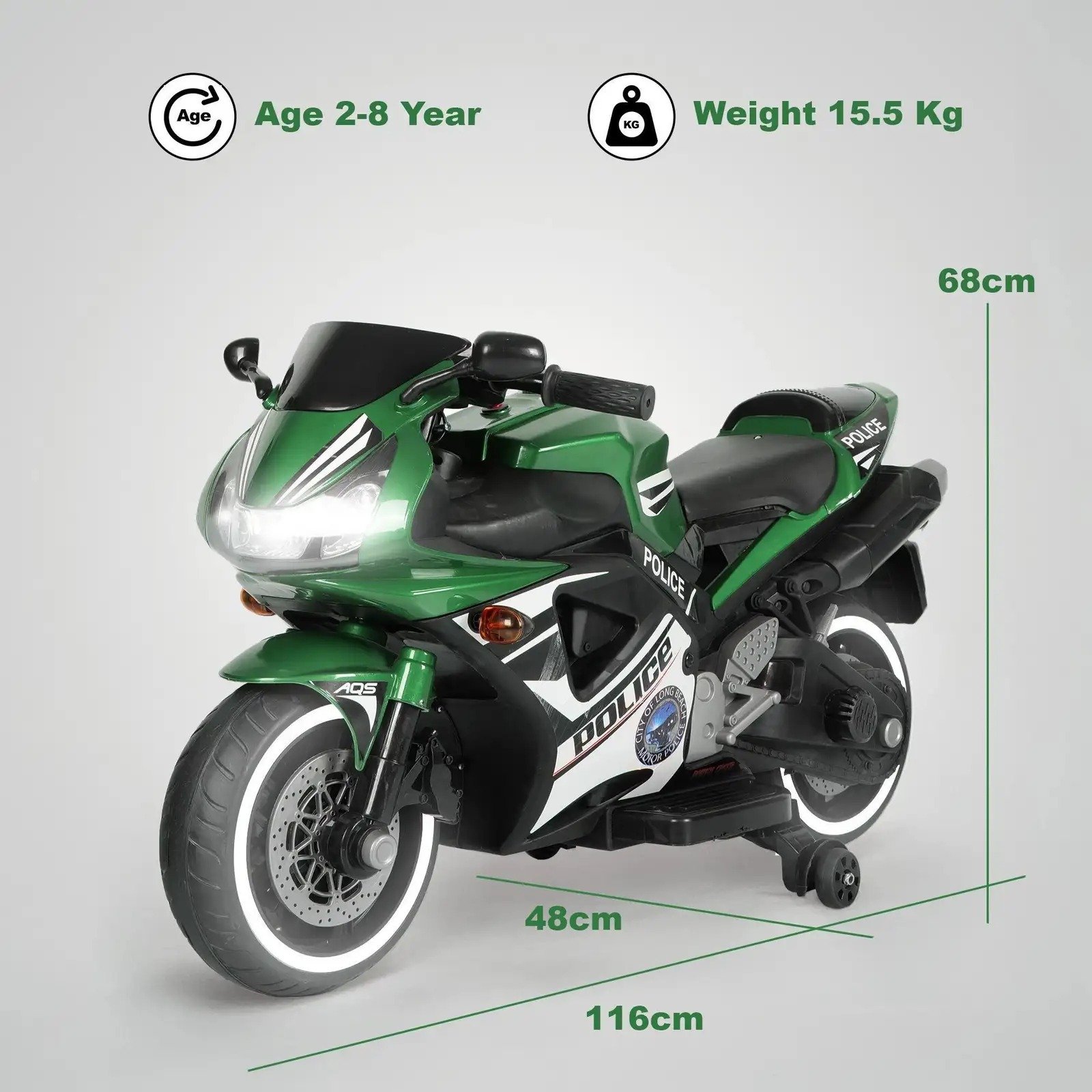 Be the first to review “Battery Operated Bike for Kids with Foot Accelerator & Music & Training Wheels Bike Battery Operated Ride On (Green) [AA1096/96]”