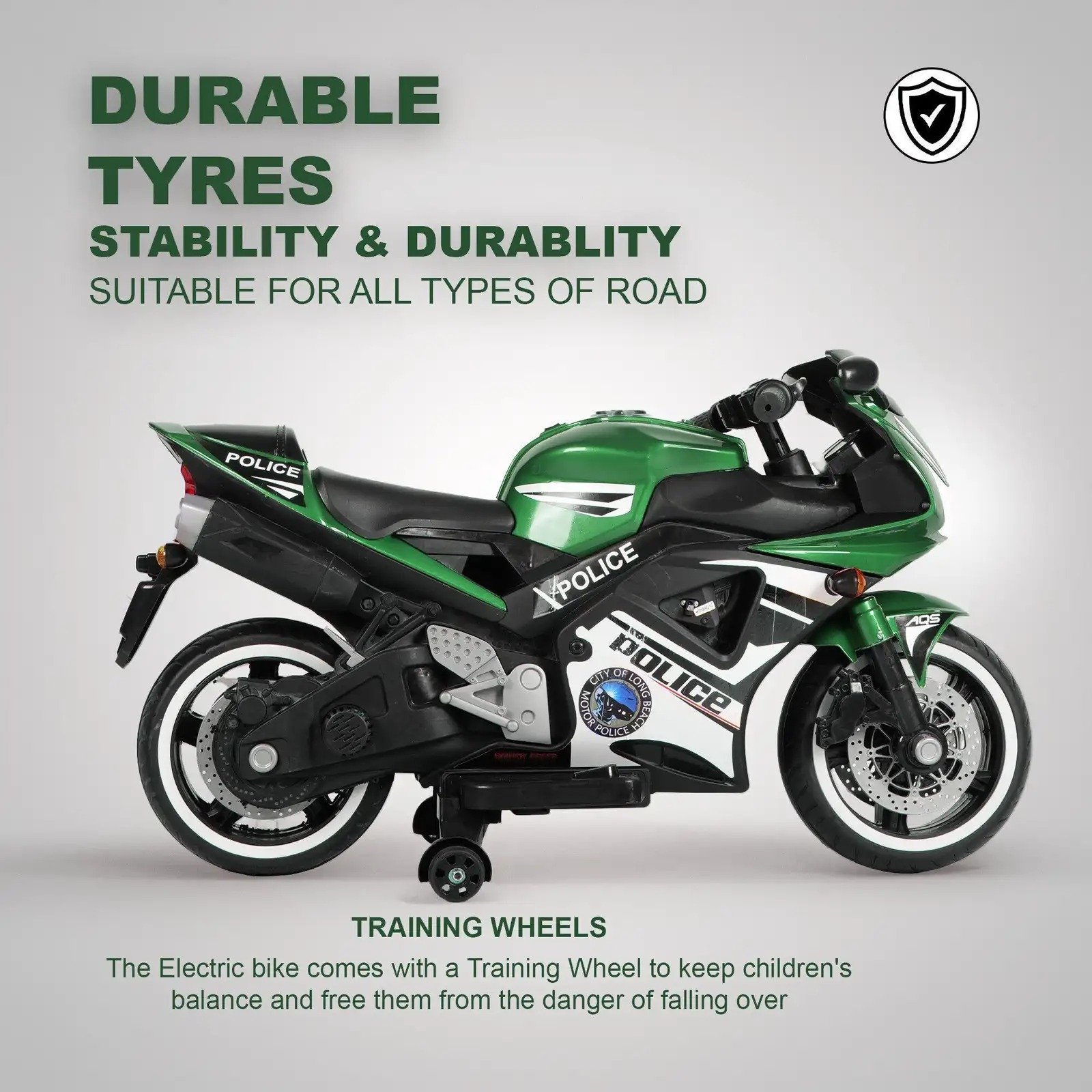 Battery Operated Bike for Kids with Foot Accelerator & Music & Training Wheels Bike Battery Operated Ride On (Green) [AA1096/96]