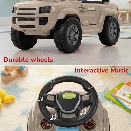 Baybee Rover Baby Ride on Car for Kids | Push Rideons Toys Car with LED Lights & Music | Portable Ride on Jeep with Backrest & Toy Storage Basket | Kids Car to Drive 1-3 Years Boys Girls (Desert& Rover Florecent Green & Rover Orange & Rover Pink & Rover Red))