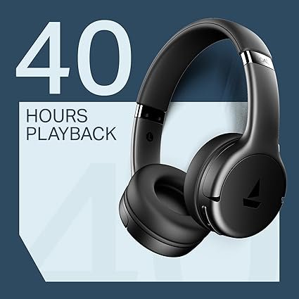 Boat 2025 Launch Rockerz 411, 40Ms Low Latency, 40Hrs Battery, 40Mm Drivers, ENx Tech, Stream Ad Free Music via App Support, Bluetooth Headphones, Wireless Over Ear Headphone with Mic (Active Black) (AA1104/186)