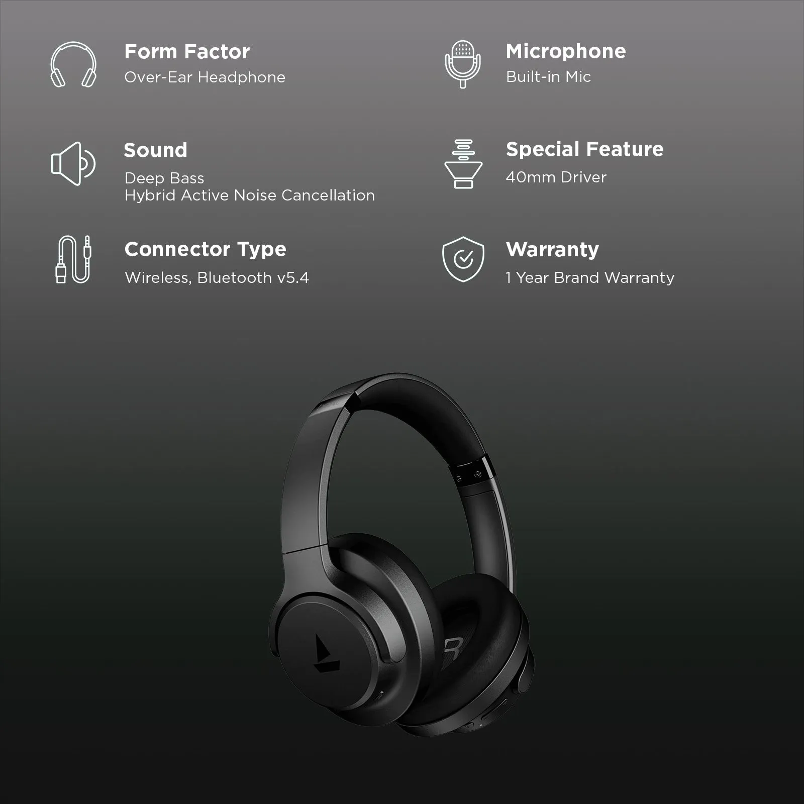 boAt Rockerz 512 ANC Bluetooth Headphone with Mic (ENx Technology, Over Ear, Cosmic Black)
