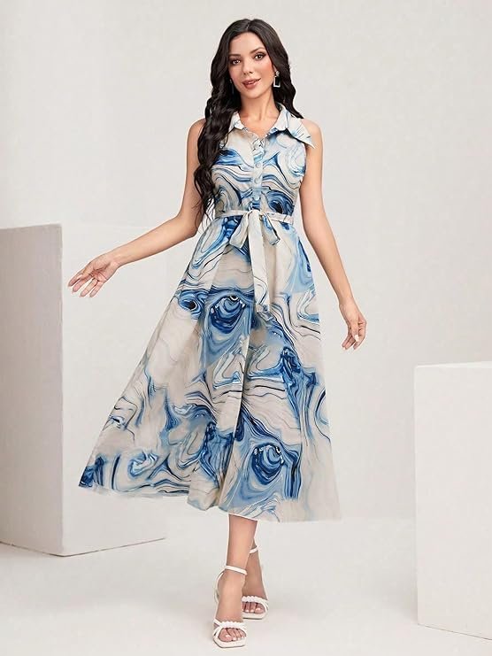 One Piece Dress for Women, New American Print Rayon Midi Dress, Stylish, Modern Party Outfit, Perfect for Casual and Formal Occasions