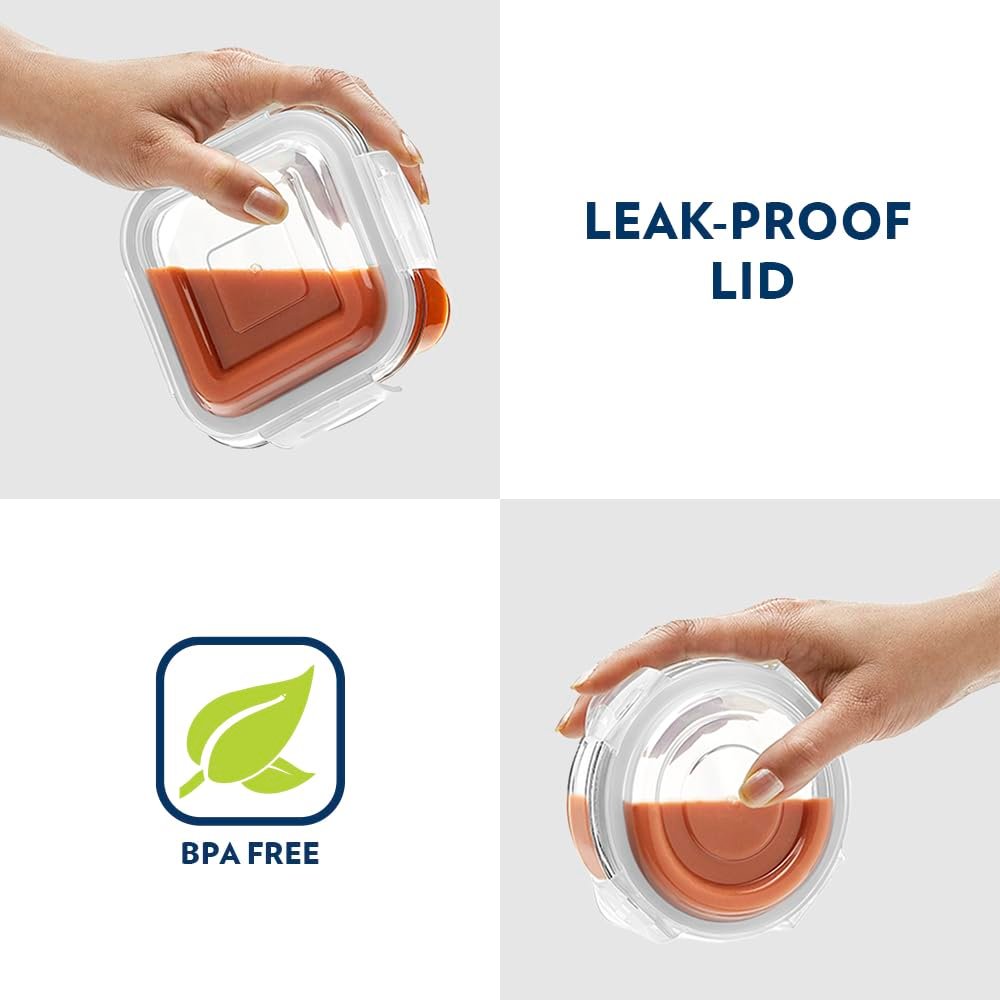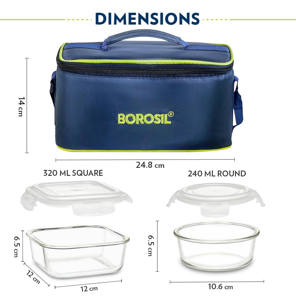 Borosil Klip n Store Universal Lunchbox | 320ml x 2 Square + 240ml x 2 Round Container Set | Made in India Borosilicate Glass | Microwave & Dishwasher Safe | Tiffin for Office/School/College(AA1103/190)