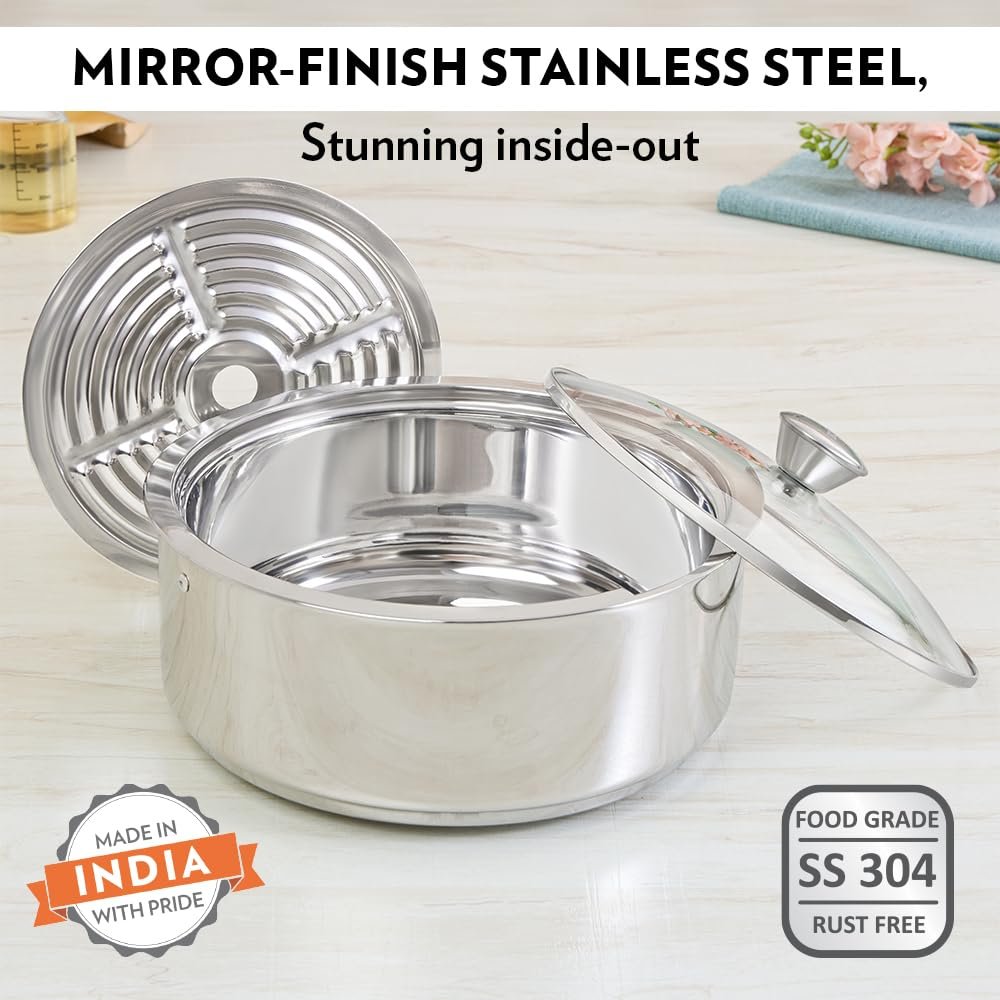 Borosil Stainless Steel Insulated Roti Server | PUF Insulated Chapati Casserole with Toughened Glass Lid | Odour-Proof, Food-Grade | Daily Use & Gifting (2.5 L)(AA1103/156)