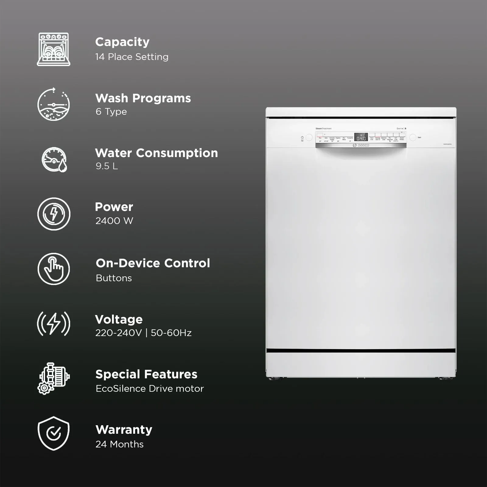 Be the first to review “BOSCH Series 6 14 Place Settings Free Standing Dishwasher with Glass Protection Technology (No Pre-rinse Required, White)”
