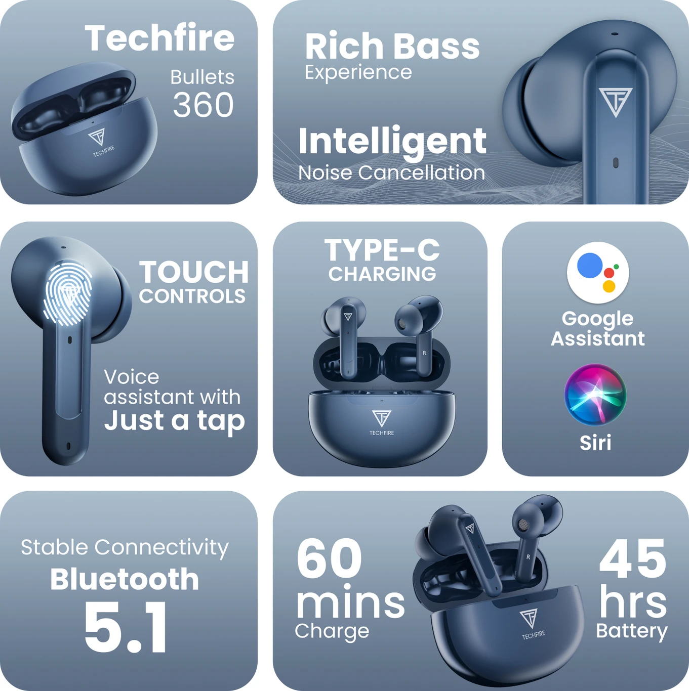 Bullets 360 TWS Earbuds With 100HRS Playtime blue tooth Headset (Bold Blue, Ture Wireless) (AA1104/77)