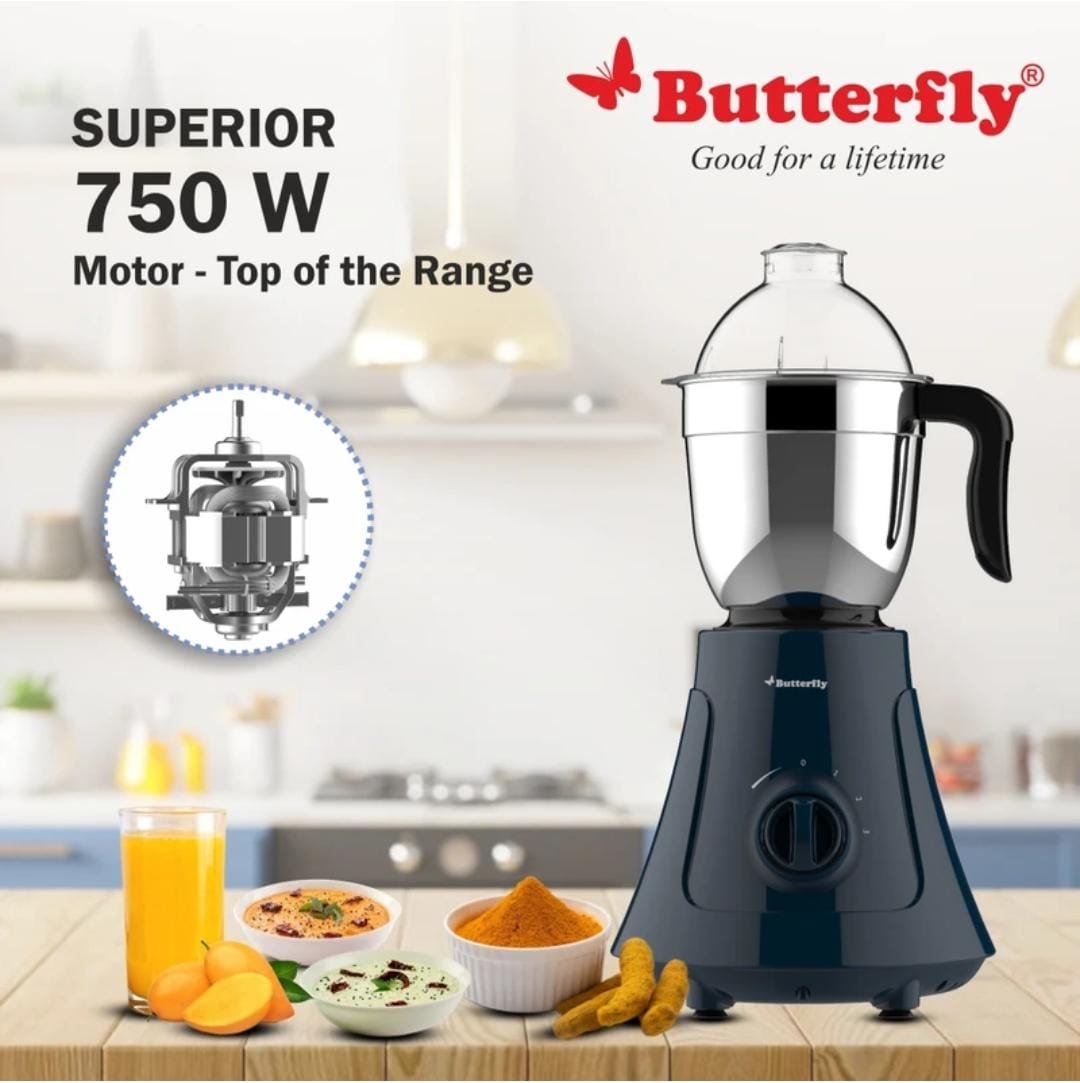 Be the first to review “Butterfly 4J 750 W Juicer Mixer Grinder (Speedy 4J | 4 Jars | Ink Blue)” Cancel reply