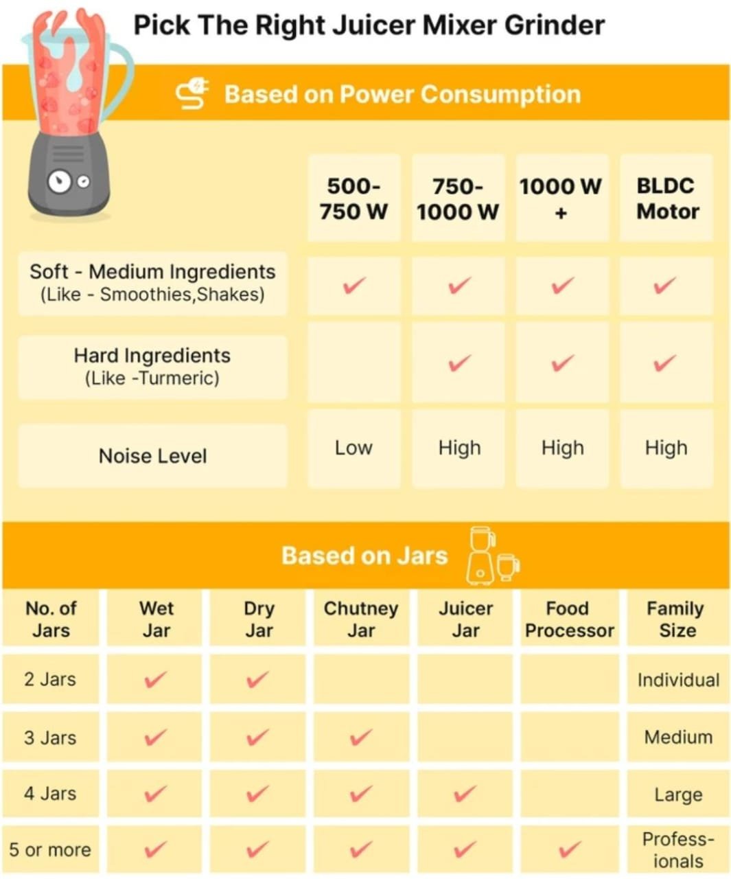 - 750 W : Higher the Wattage, tougher the Juicing/Grinding
