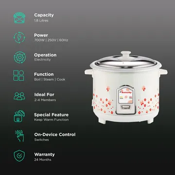 USHA RC18SS2 1.8 Litre Electric Rice Cooker with Keep Warm Function (White)