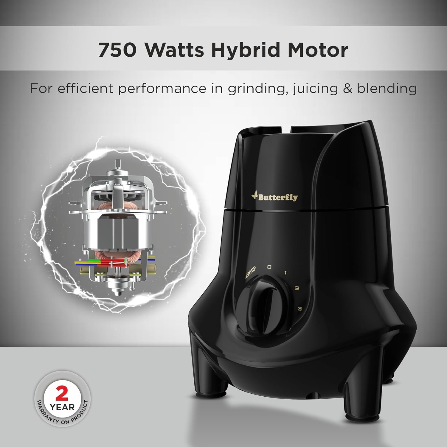 Butterfly Jet Elite Mixer Grinder, 750W, 4 Jars (Grey)