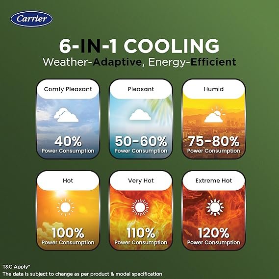 Carrier 1 Ton 3 Star Flexicool Inverter Split AC (Copper, Convertible 6-in-1 with Smart Energy Display, Insta Cool, Auto Clean, PM 2.5 Filter, 2026 Model, ESTER EDGE Gxi-CAI12EE3R36F0, White) [AA1096/12]