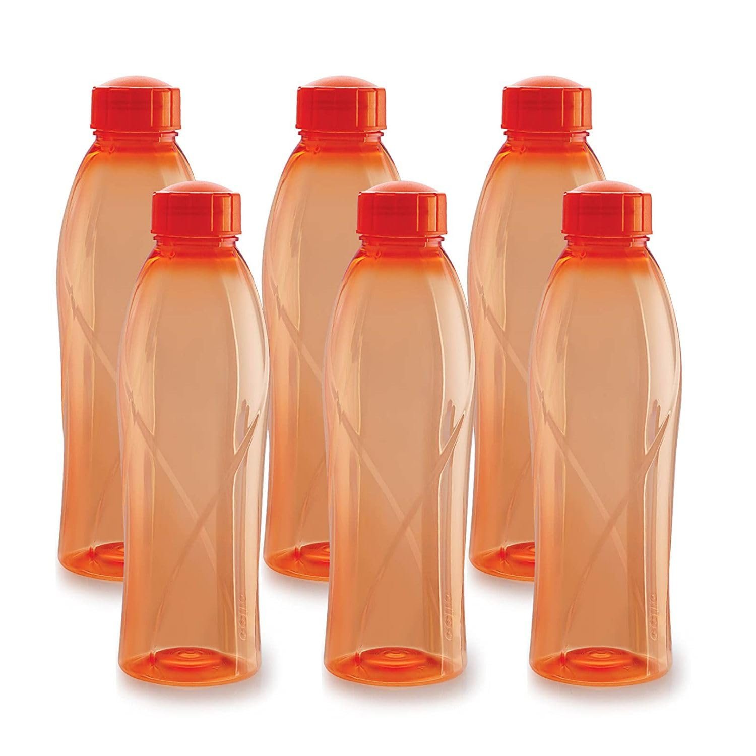 CELLO Texas PET Bottle | Leak proof and Break proof | Perfect for School, College, Work, and Outdoor adventures Water Bottle | 1 Litre, Set of 6 | Orange[AA1100/154]