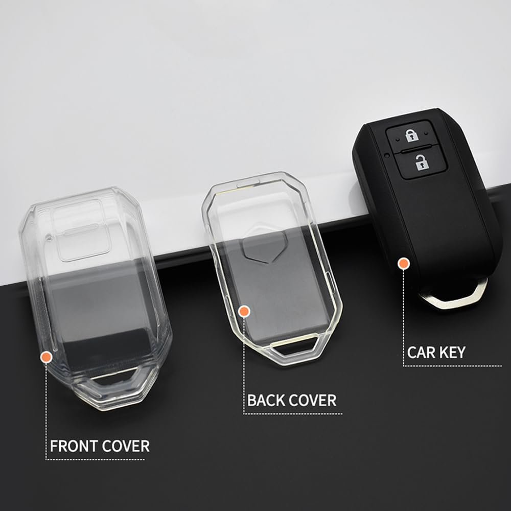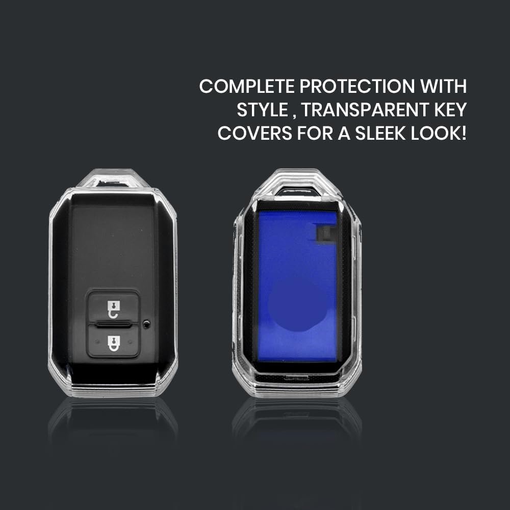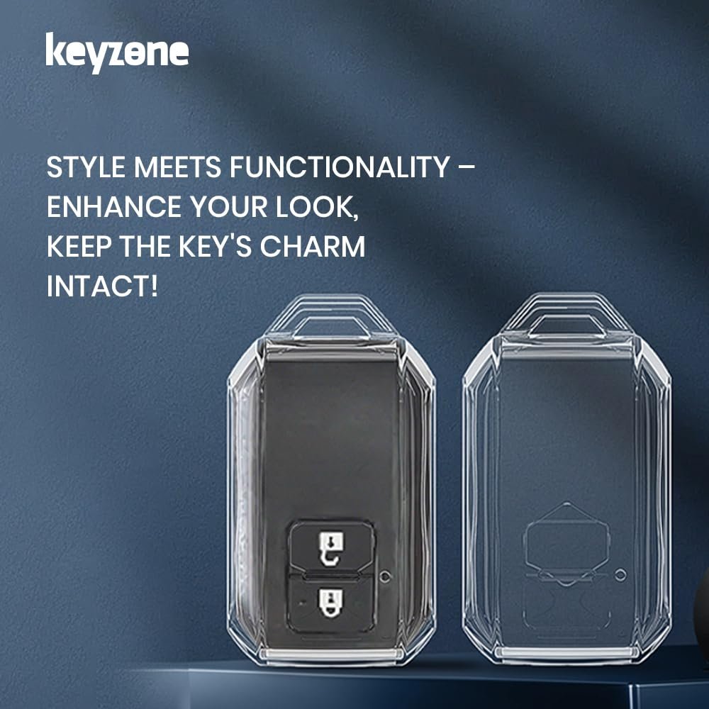 Keyzone Clear TPU Key Cover Compatible for Victoris, Jimny, Baleno, Grand Vitara, Xl6, Ignis, Swift, Ertiga, New Brezza 2022, Dzire, Fronx 2 Button Smart Key (Clear TPU)[aa1098]
