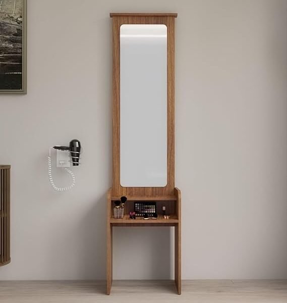 NEUDOT Dallas Wooden Dressing Table with Mirror and Storage | Engineering Wood | Vanity Table with Mirror | Vanity Dressing Table for Bedroom, 12 Months Warranty | Brown