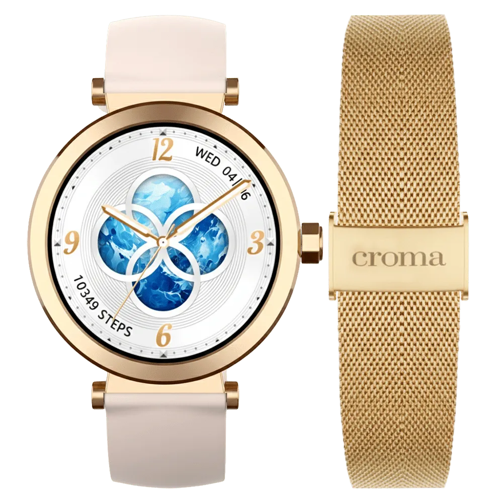 Croma VELCOITY GF Smartwatch with Bluetooth Calling (2025 Model, 1.32inches AMOLED Display, IP68 Waterproof, Rose Gold Strap)