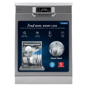 Crompton Voila 13 Place Settings Free Standing Dishwasher with Direct Triple Wash Technology (Silver Inox)