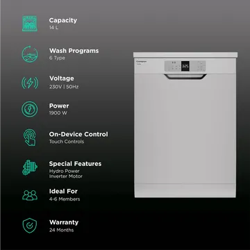 Crompton Voila 14 Place Settings Free Standing Dishwasher with Steam Wash (Dark Silver)