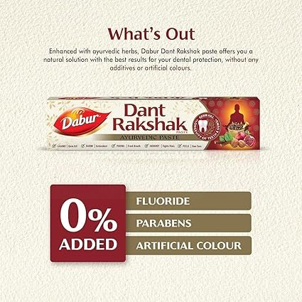Dabur Dant Rakshak Ayurvedic Toothpaste – 700g (175g x 4) | With Goodness Of 32 Ayurvedic Herbs | Prevents & Calms Gum Pain | Kills Germs | Complete Family Toothpaste | No Added Fluorides & Parabens