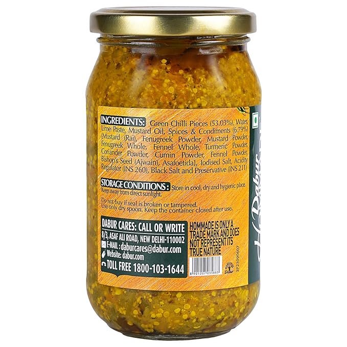 Dabur Hommade Green Chilli Pickle , 400 Gm (AA1104/262)