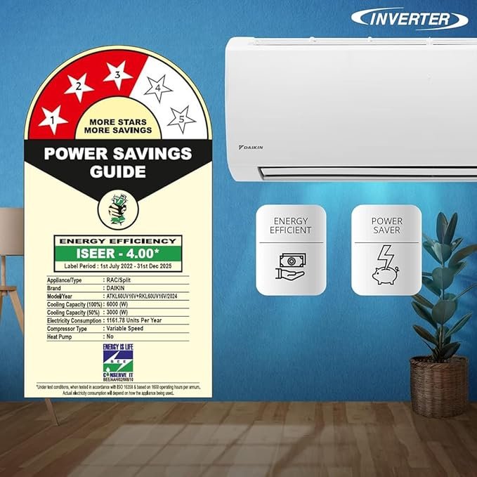 Daikin 1.8 Ton 3 Star Inverter Split AC (Copper, Anti Bacterial Filter, ATKL60UV16, White)