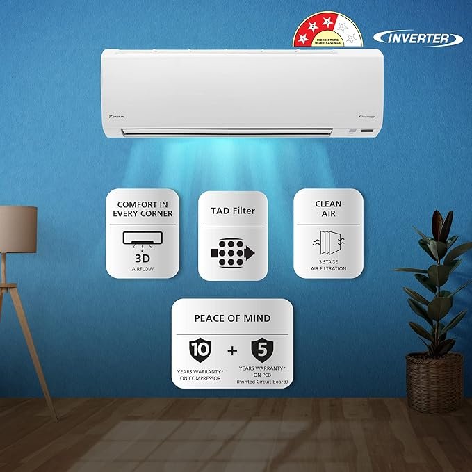 | Special Feature | 3D Airflow, Dew Clean Technology, High Ambient Operation upto 52°C, Titanium Apatite, Triple Display |